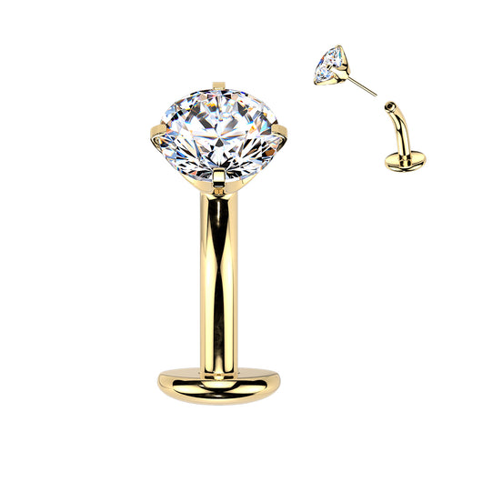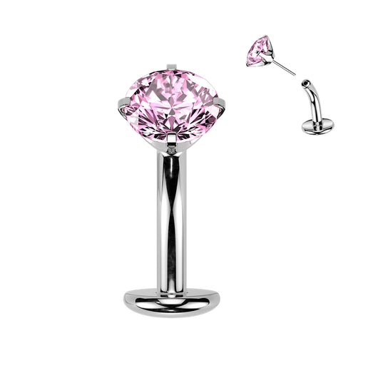 Titanium Threadless Floating Convex Base Prong Set CZ Top Belly Button Ring