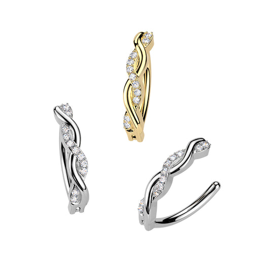 316L Surgical Steel Pave CZ Twist Hinged Belly Button Clicker Ring