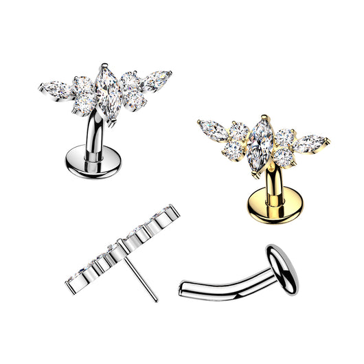 Indulge in self-expression with our Titanium Threadless Floating Belly Button Ring. Its unique floating design is both adaptable and unconventional, perfectly complementing your individuality. Crafted with a Titanium Threadless Floating Convex Base and adorned with Marquise CZ Wing Top, this navel piercing is more than just a fashion statement.