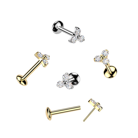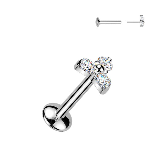 Titanium Threadless Push In Trinity Moissanite Top Labret Tragus Rock