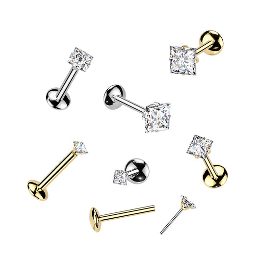 Titanium Threadless Push In Square Moissanite Top Labret Tragus Rock