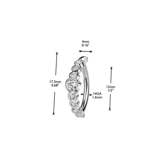 316L Hinged Belly Button Ring With Heart CZ and 6 Round CZ