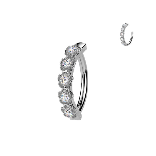 316L Surgical Steel Hinged Belly Button Ring Lined With CZ Centered Flowers