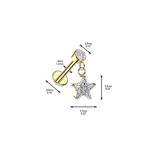 All 316L Internally Threaded Flat Back Labret With Bezel Set CZ &