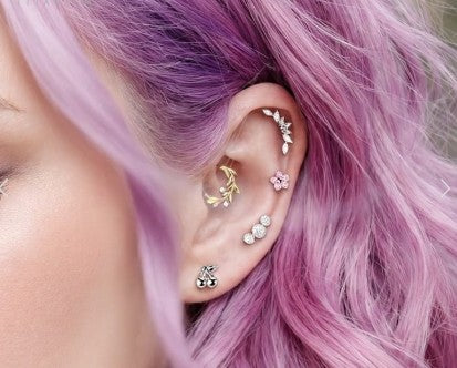 Piercing Area: Nose, Septum, Lip, Ear Cartilage - Lobe, Helix, Daith, Rook, Conch, Tragus, Snug and more.