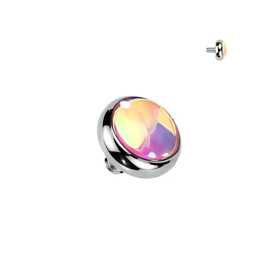 Titanium Internally Threaded Flat Bezel Iridescent Stone Dermal Anchor Top