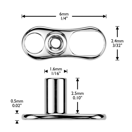 Titanium Wide Face Bezel Set CZ 2 Hole Dermal Anchor