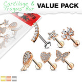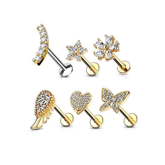 6 Pcs Assorted CZ Tops Internally Threaded Labret Studs 316L Surgical Steel Ear Cartilage Mix Value Pack