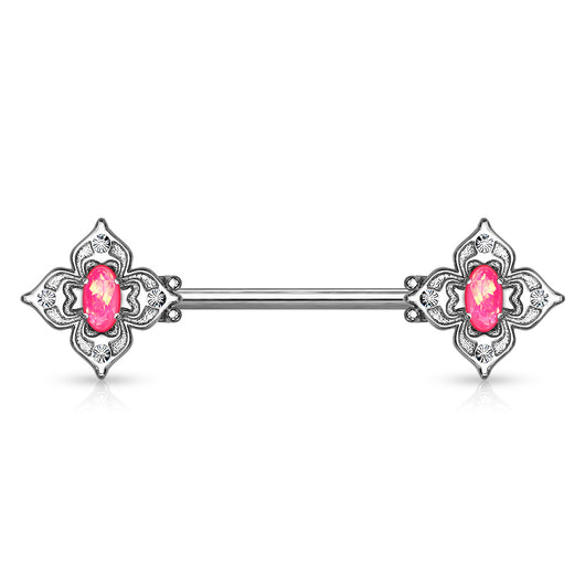 Pair Floral Filigree Crystal & Opal Glitter Nipple Barbell Rings